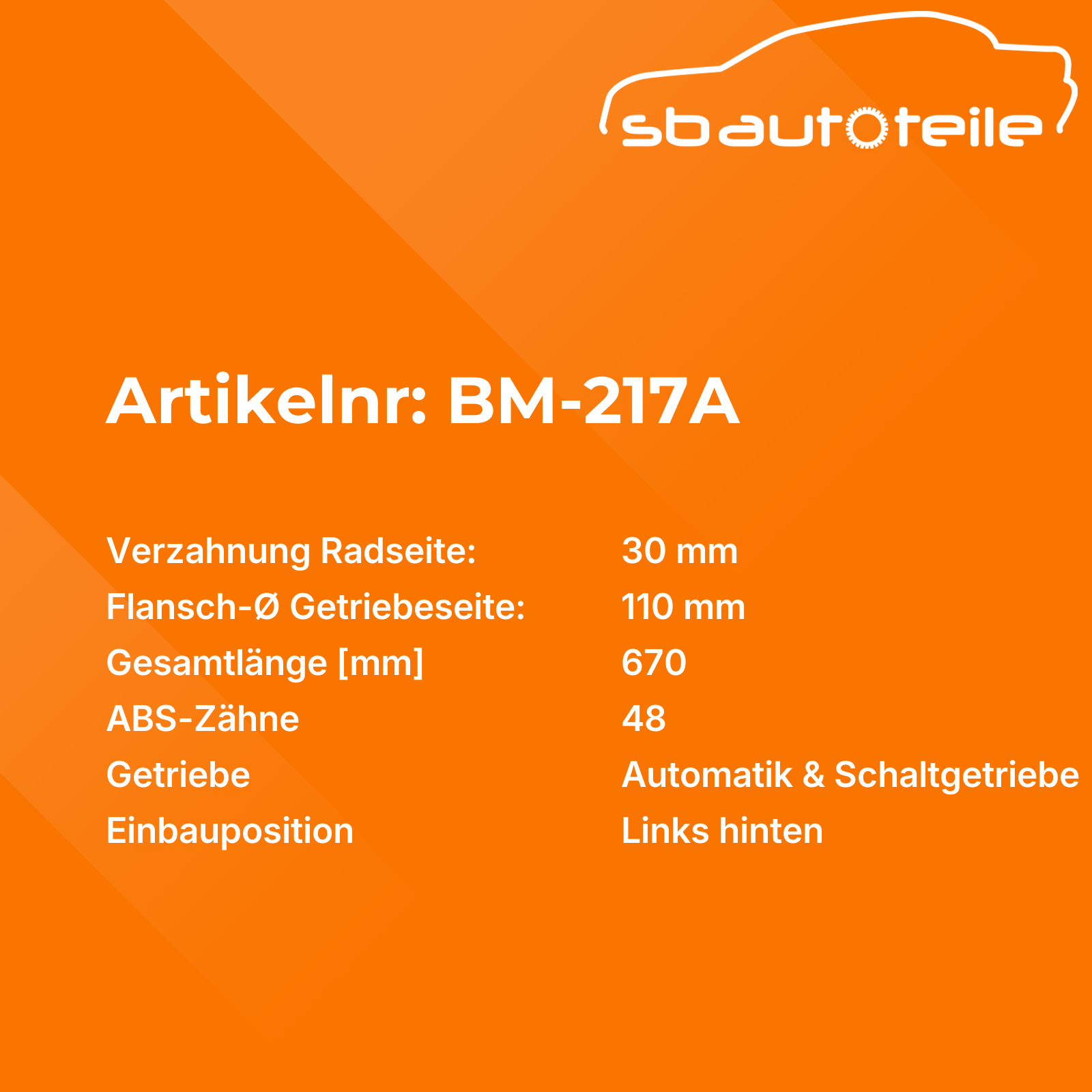 Informationen zu Antriebswelle BM-217A