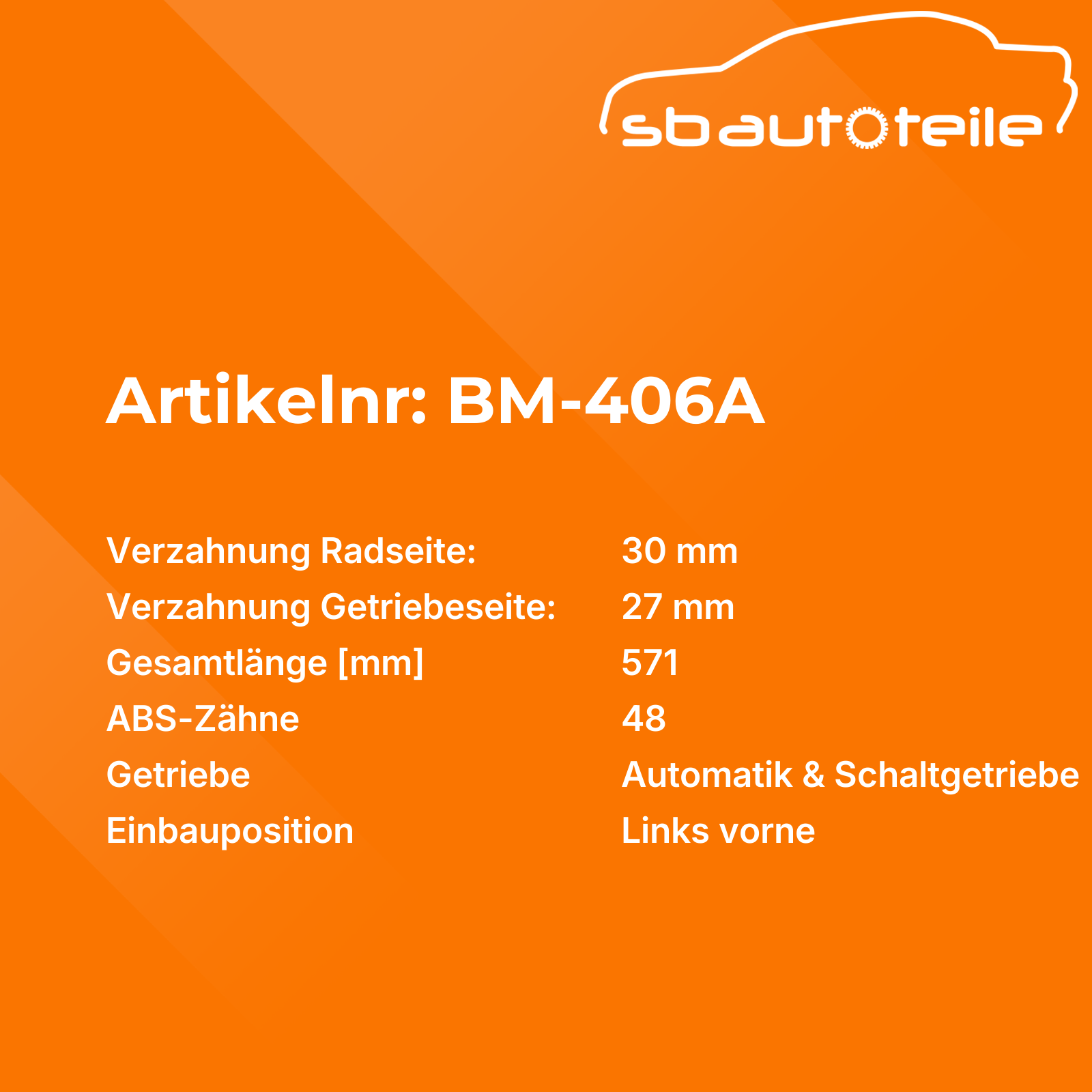 Informationen zu Antriebswelle BM-406A