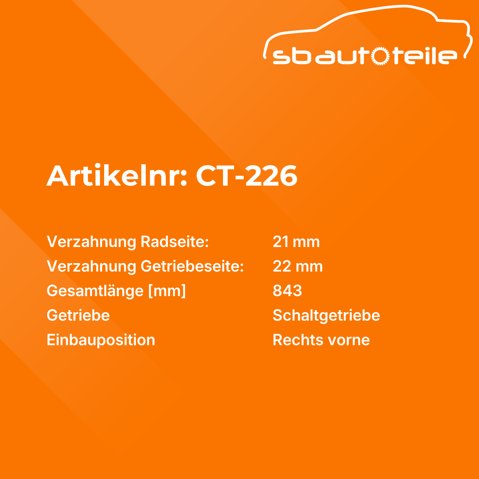 Informationen zu Antriebswelle CT-226