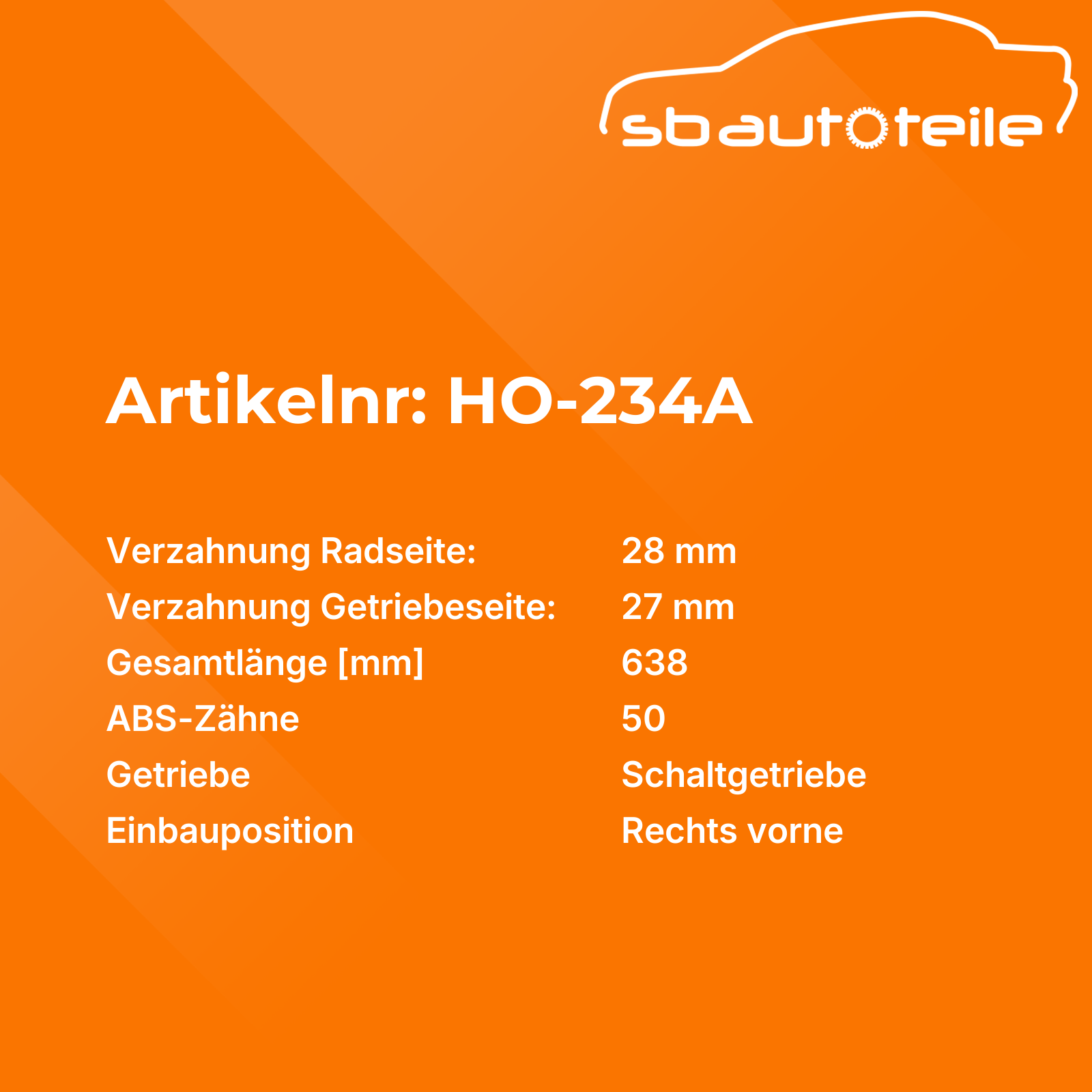 Informationen zu Antriebswelle Rechts vorne HO-234A