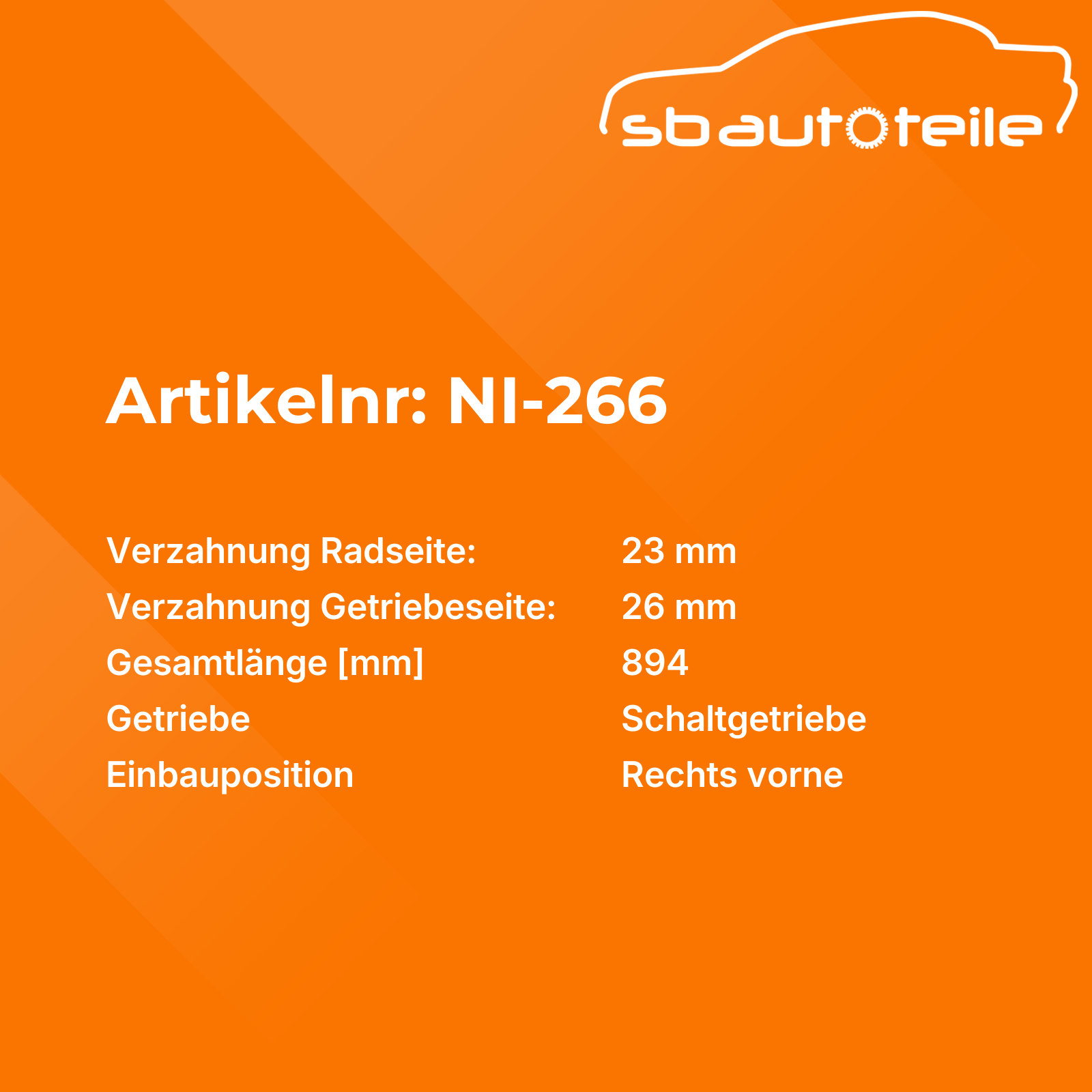 Antriebswelle NI-266 Rechts vorne