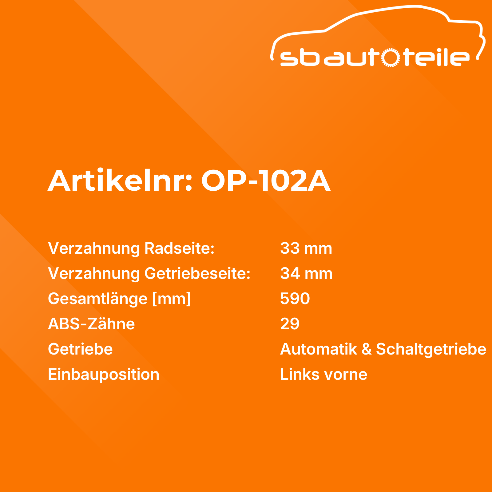 Informationen zu Antriebswelle Links vorne OP-102A