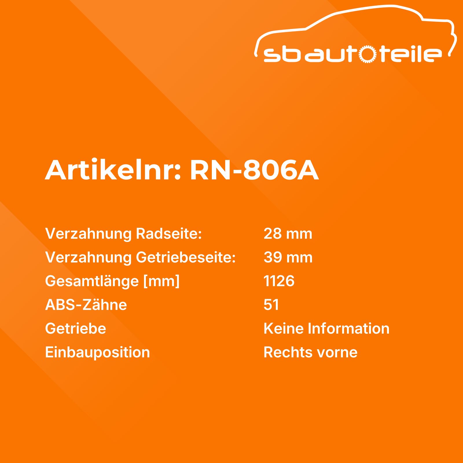 Informationen zu Antriebswelle RN-806A
