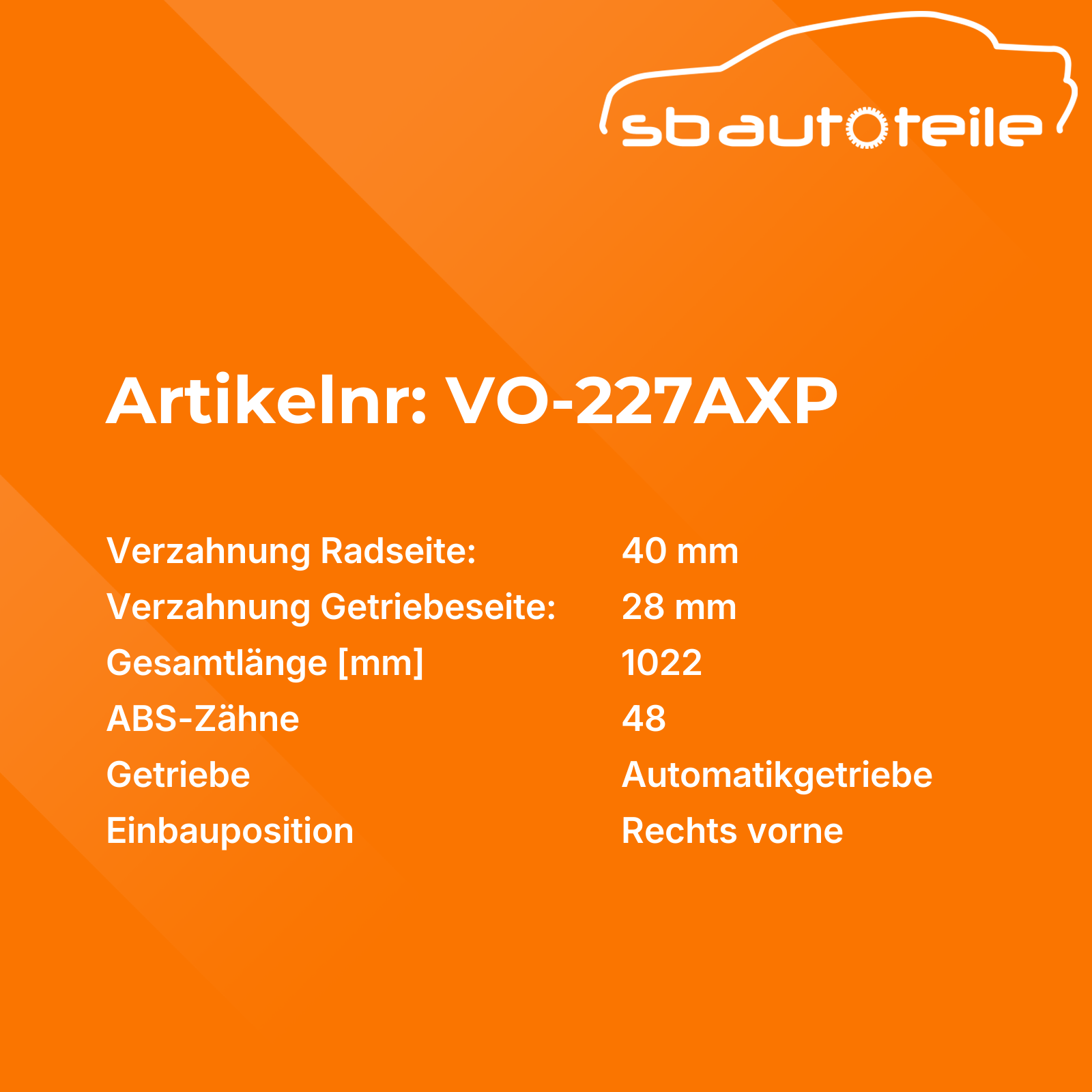 Informationen zu Antriebswelle VO-227AXP