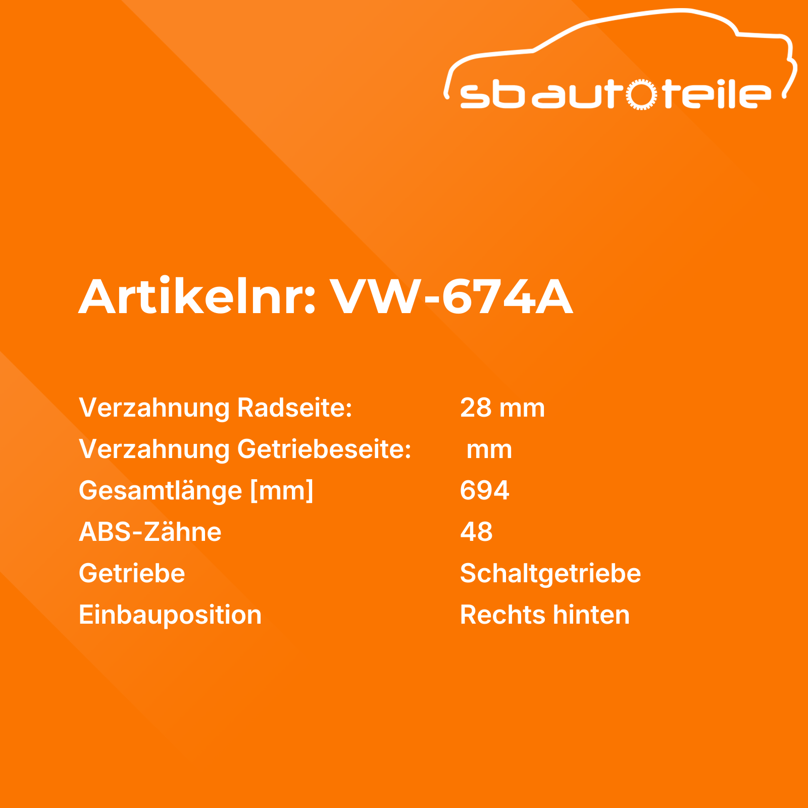 Informationen zu Antriebswelle VW-674A